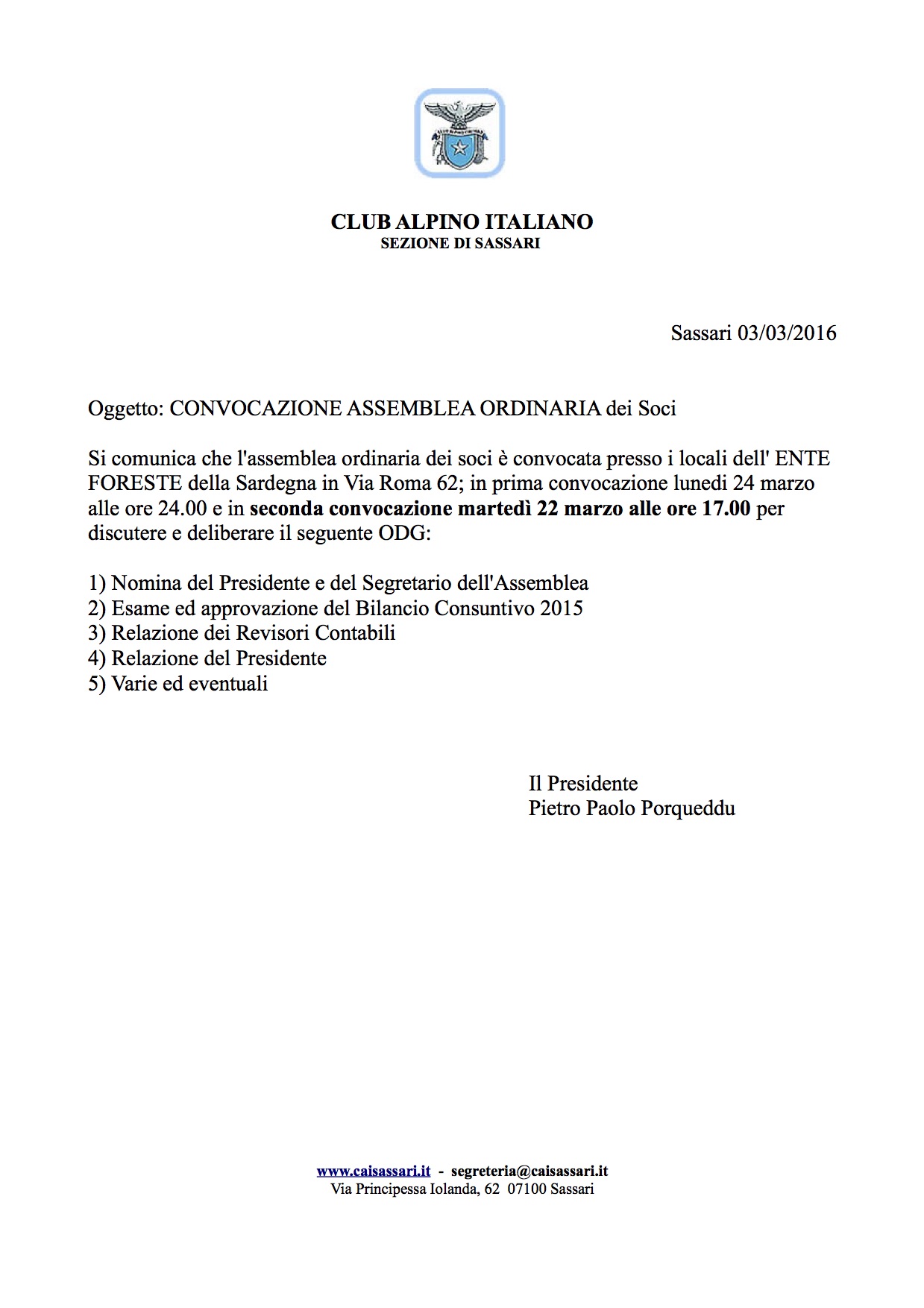 Convocazione per l’Assemblea Ordinaria dei Soci